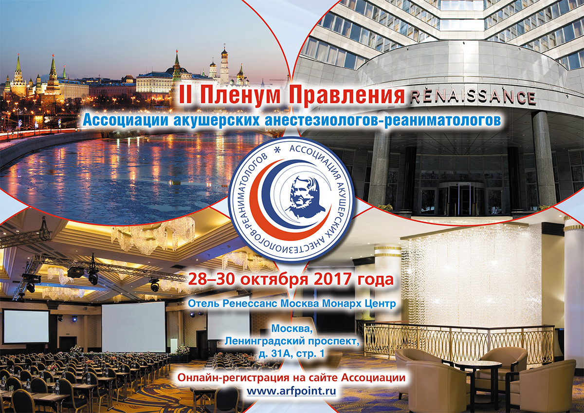 28-30 октября 2017 года в Москве состоится II Пленум Правления Ассоциации акушерских анестезиологов-реаниматологов, в рамках которого пройдет Всероссийский образовательный Форум «Теория и практика анестезии и интенсивной терапии в акушерстве и гинекологии»